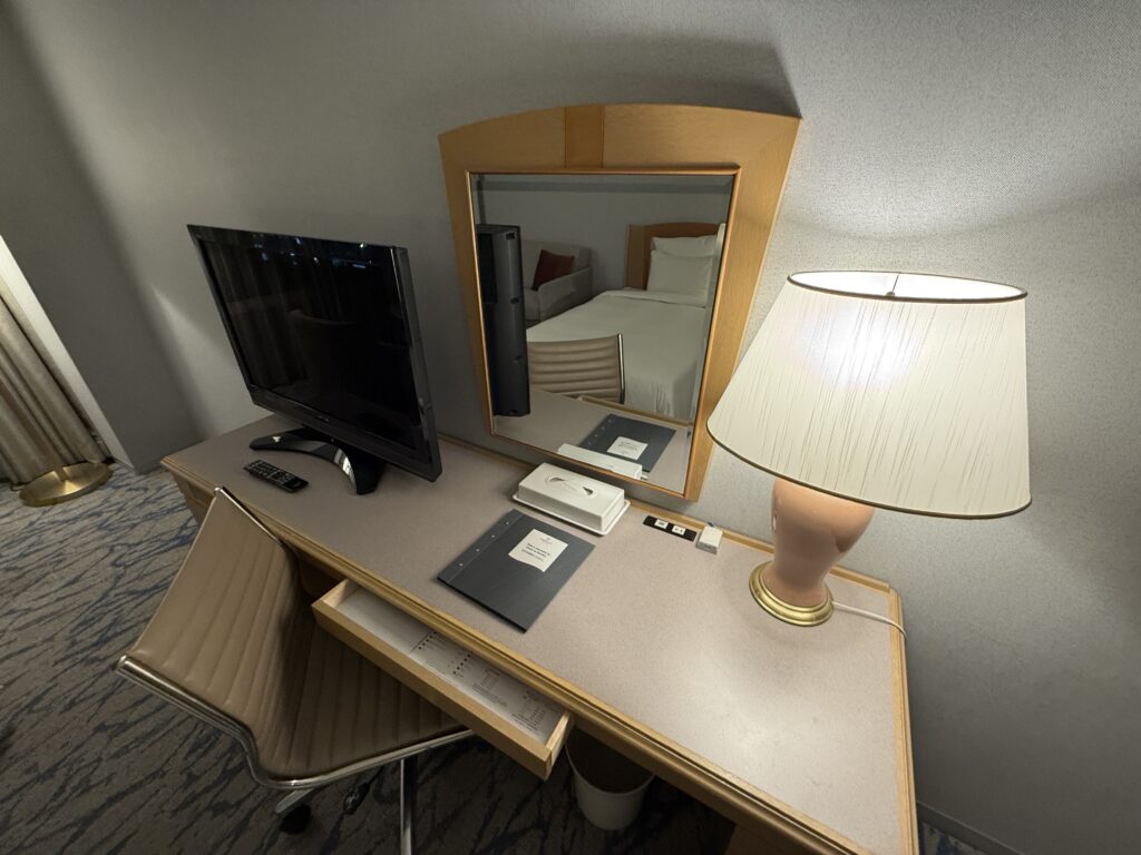 お部屋には、仕事ができる十分な広さのデスクスペースと、快適な椅子が用意されています。