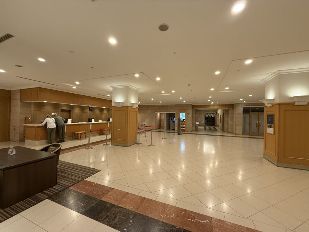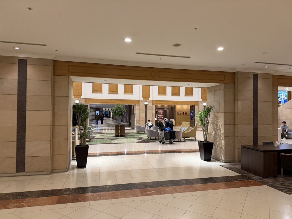 ホテルに到着すると、ロビーは広々としていて、落ち着いた高級感のある雰囲気。