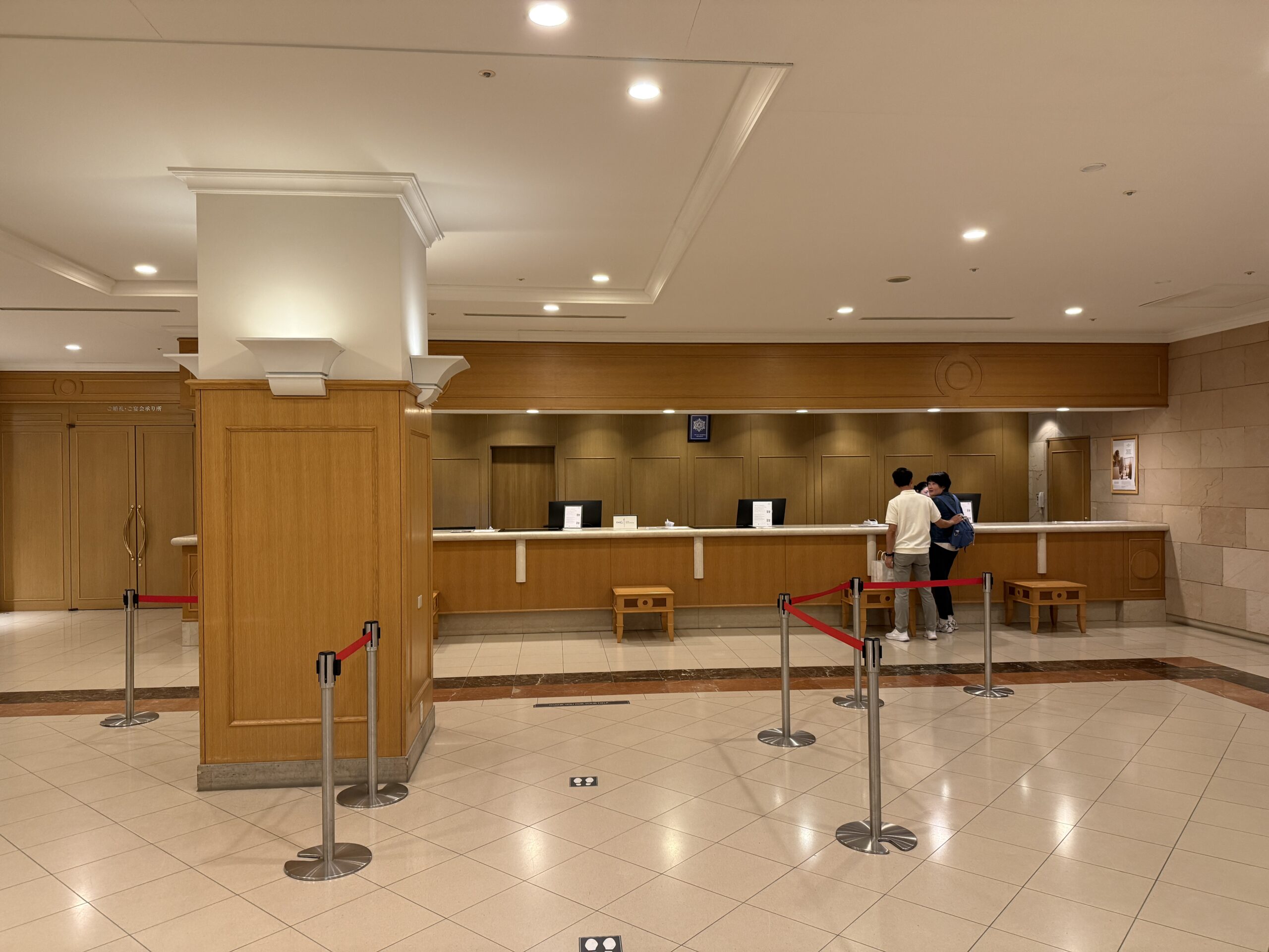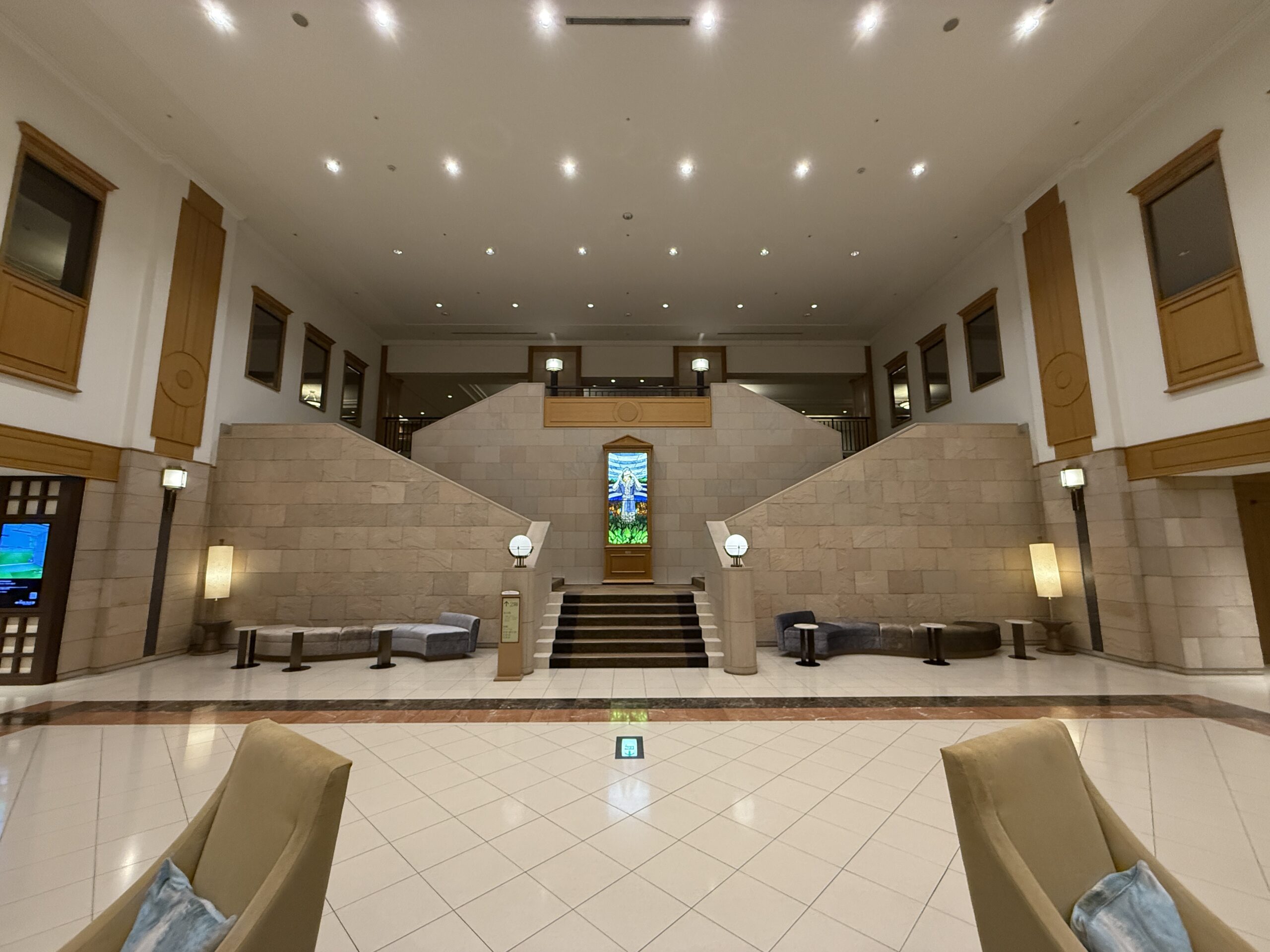 ホテルに到着すると、ロビーは広々としていて、落ち着いた高級感のある雰囲気。
