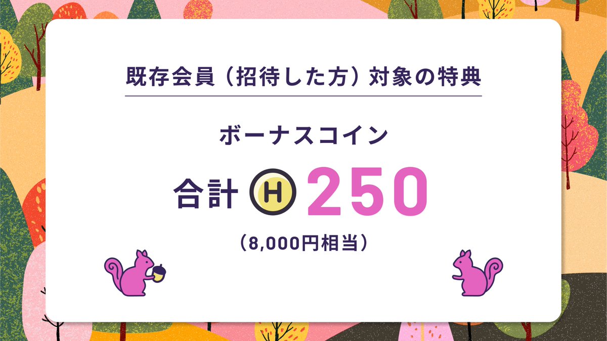 月額会員に登録後、お友達をHafHに招待すると1人招待すれば250コイン(8,000円相当)GET!