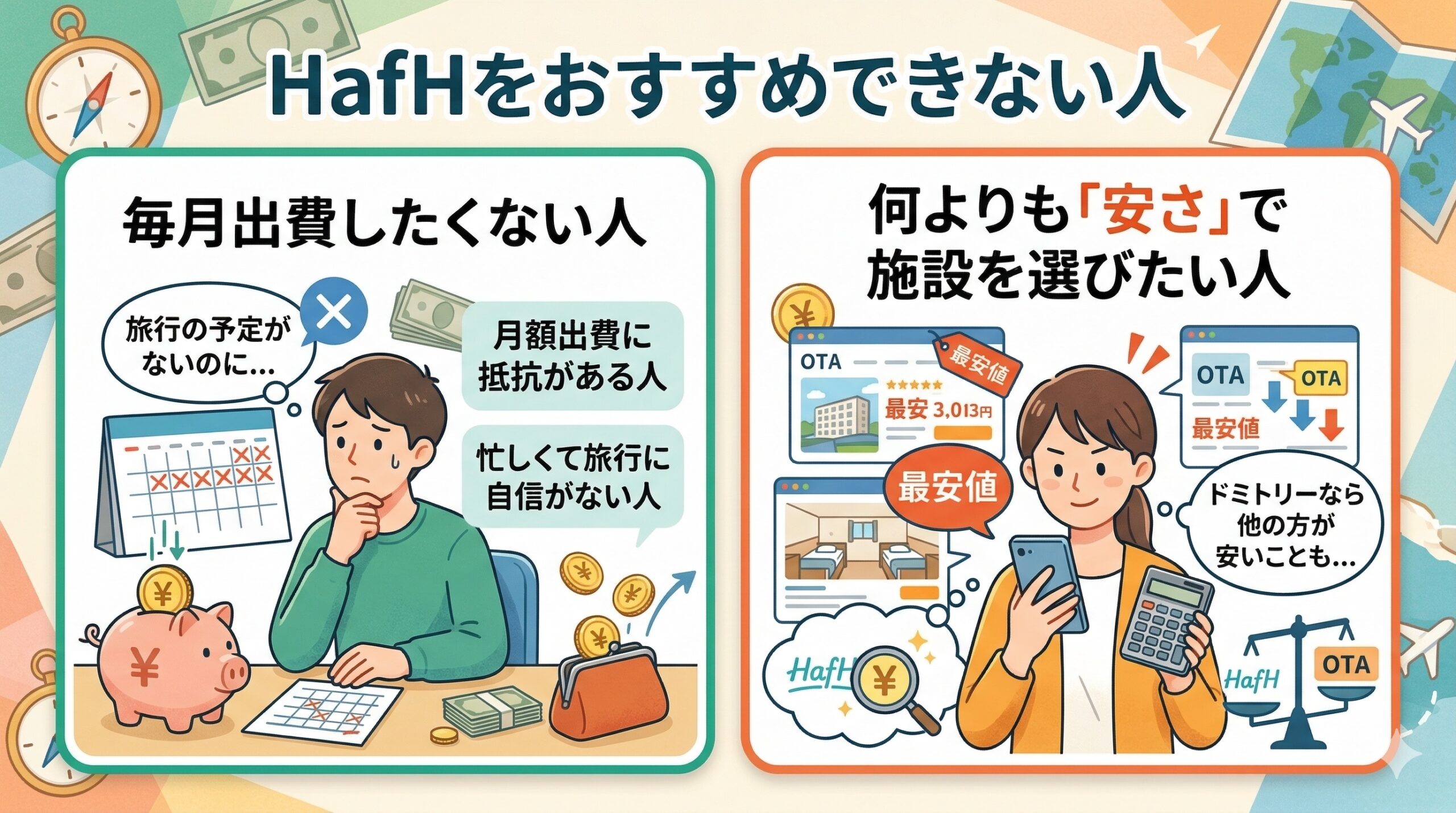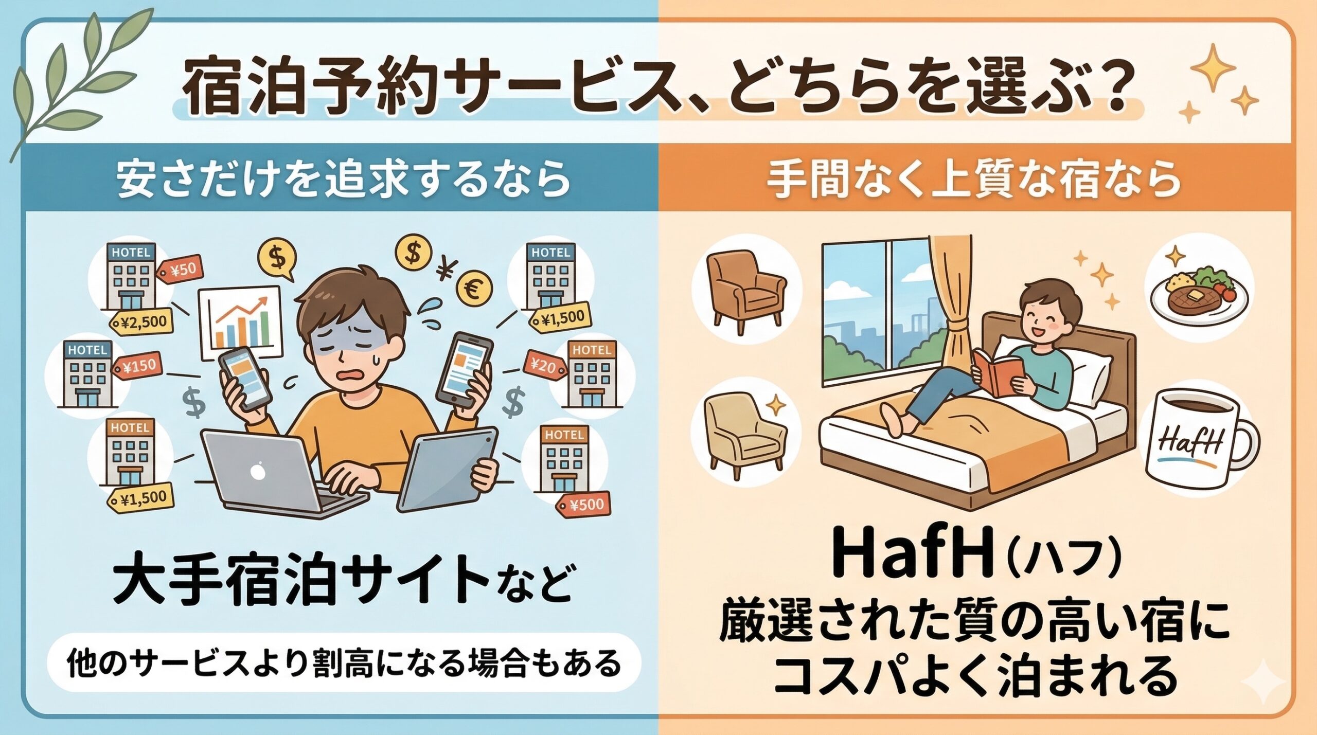 というニーズの方には、HafH以外の宿泊予約サイトを検討してみたほうがよいかもしれません。