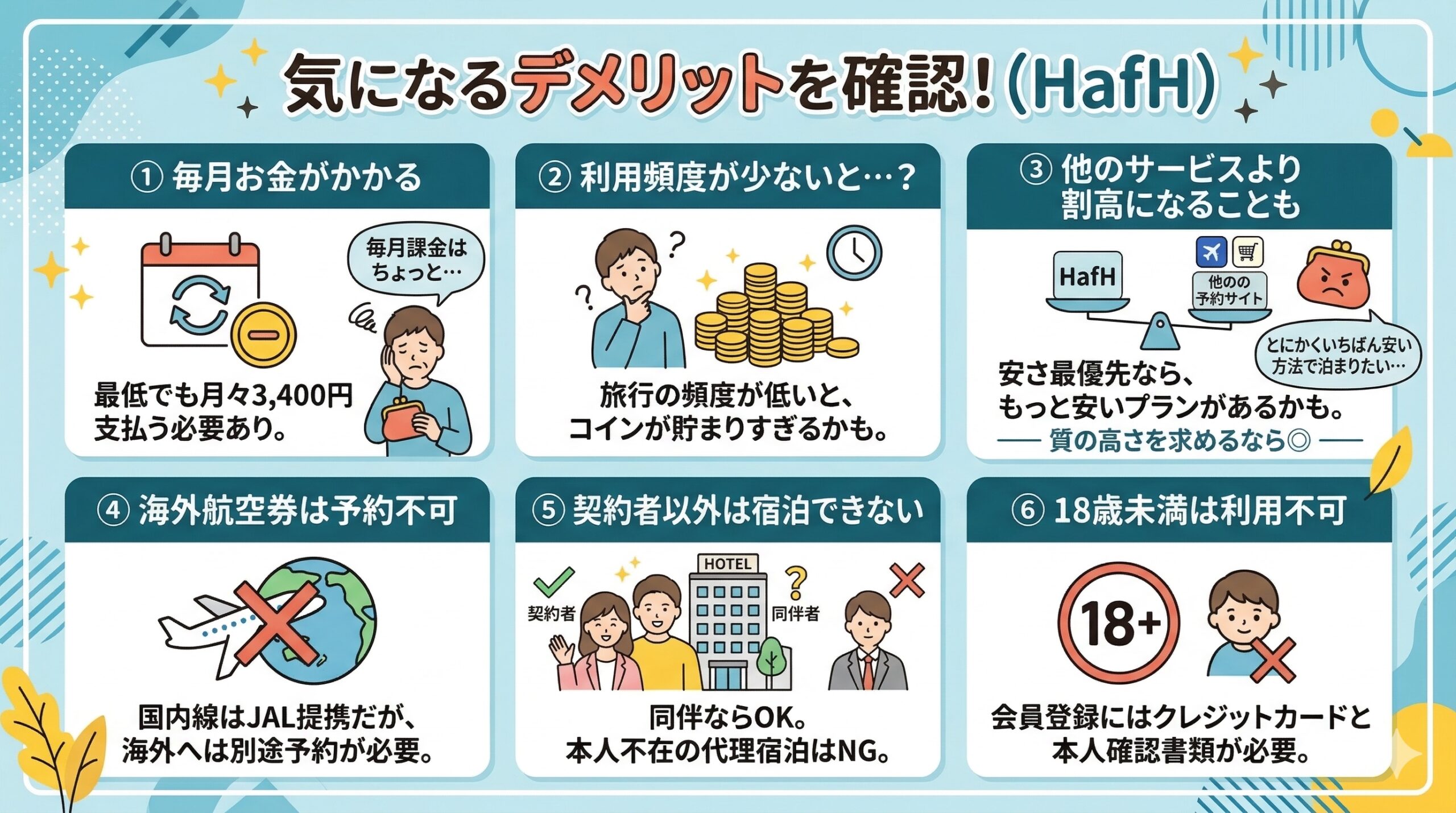 良いところが溢れているように見えるHafHですが、もちろんデメリットもあります。どのようなデメリットがあるのか確認しておきましょう。