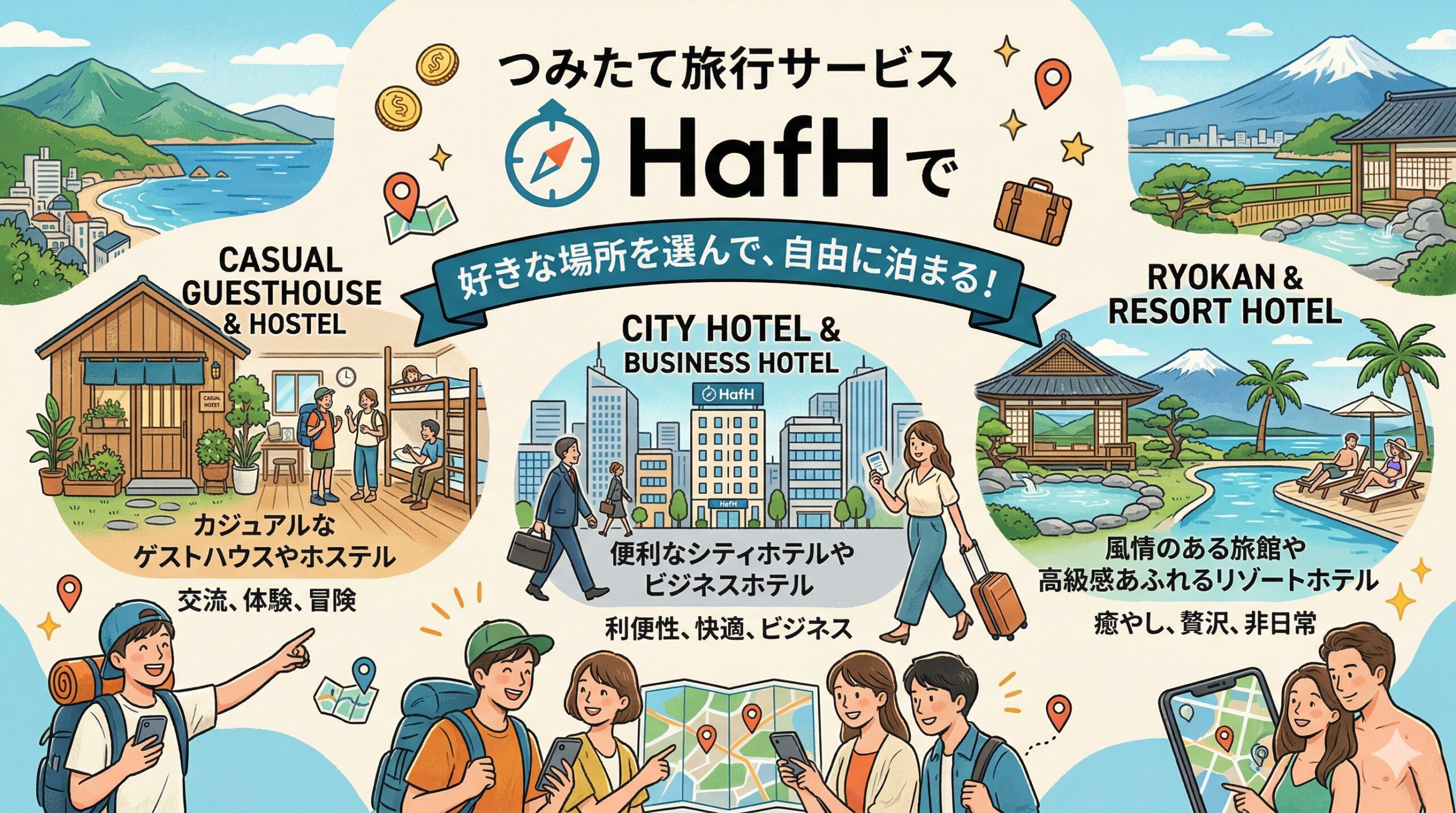 この記事では、HafHの料金プランや注意点、HafHコインの使いこなし術や宿泊施設の予約方法などについて、詳しくお話ししました。