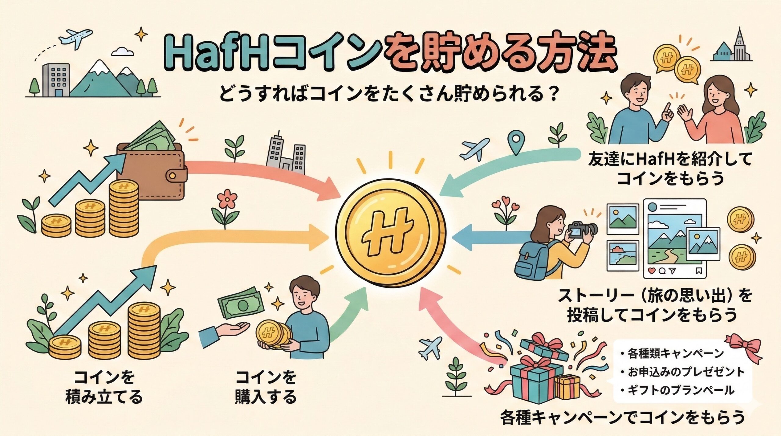 ここまでお話ししてきた内容で、HafHを最大限に活用するためには、HafHコインをしっかり貯めることが重要だとご理解いただけたのではないでしょうか。