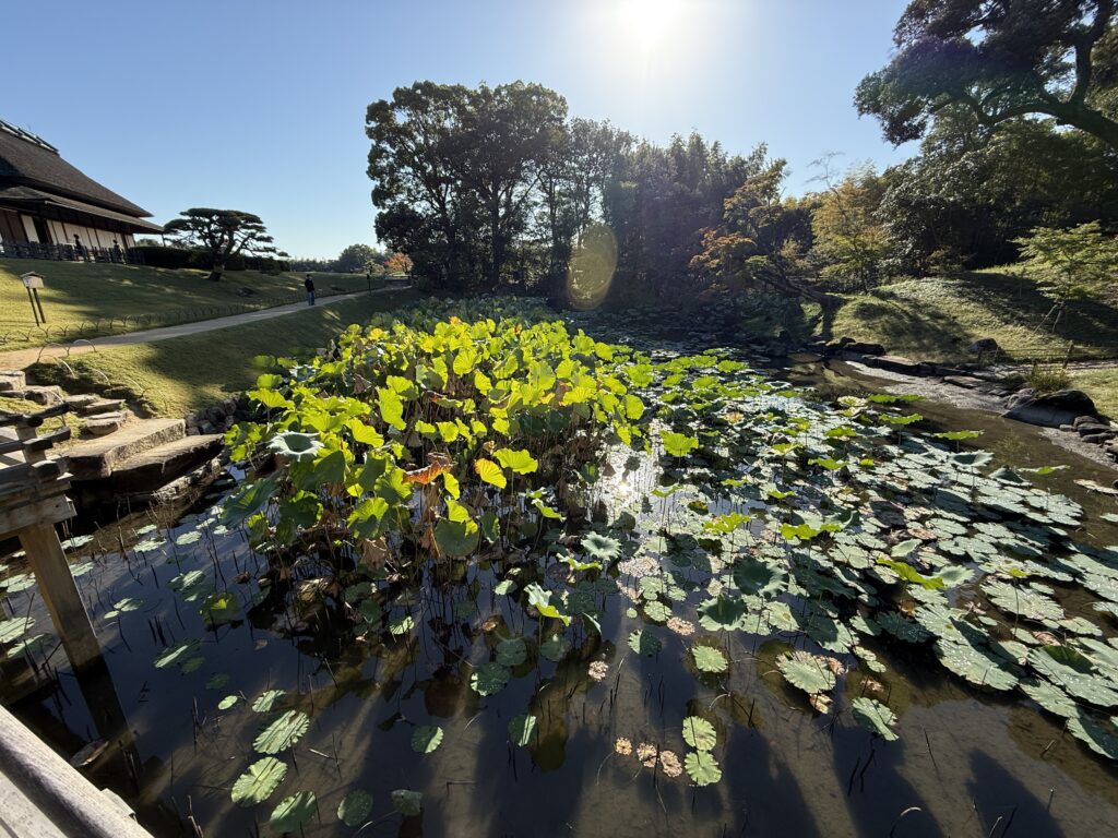 広大な池や築山が配された「回遊式庭園」ならではの、歩くごとに景色が変わる美しさがありました。