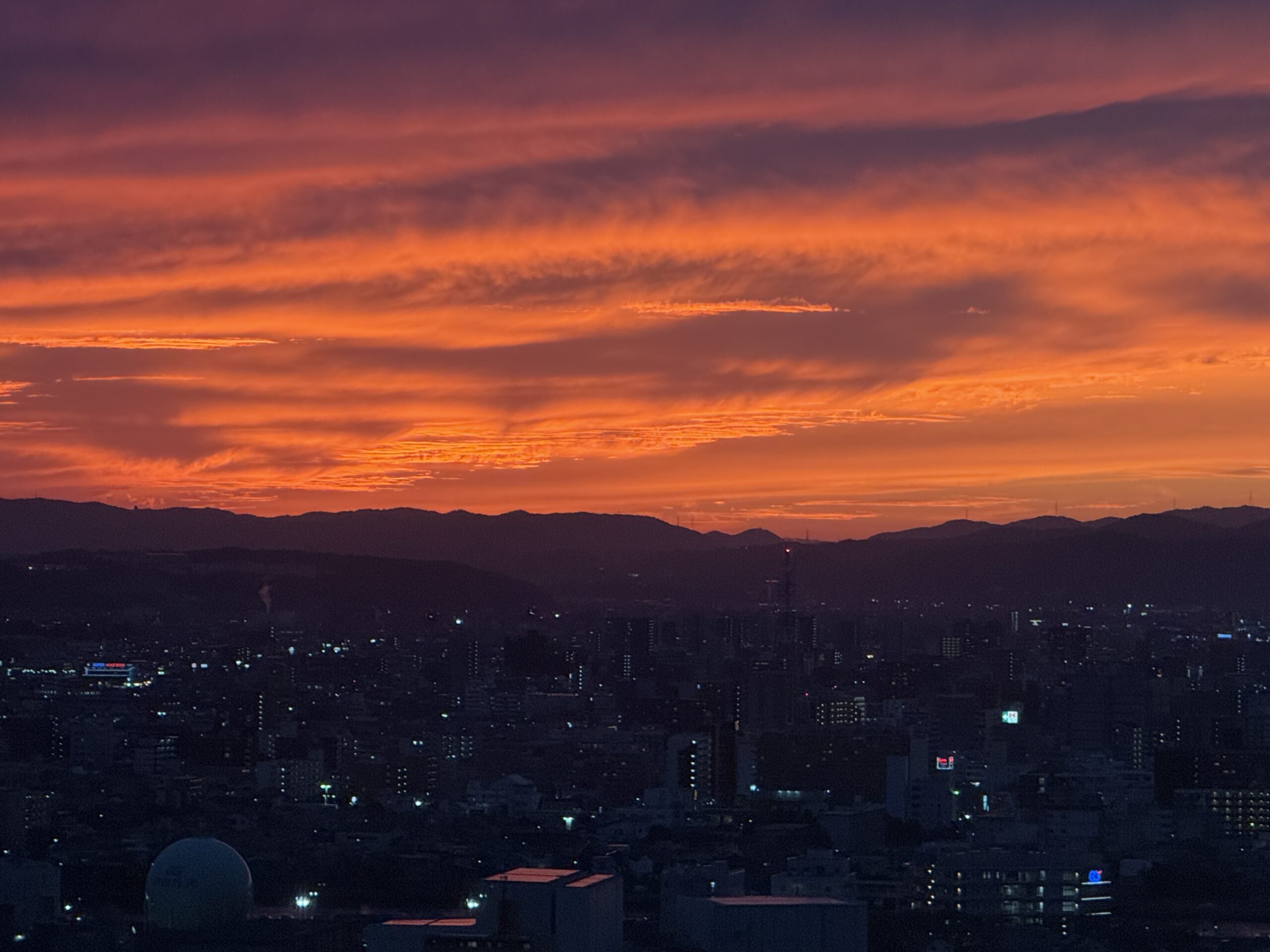 ちょうど夕焼けのタイミングで、日が落ちて街に灯りがともり始めた瞬間は最高。